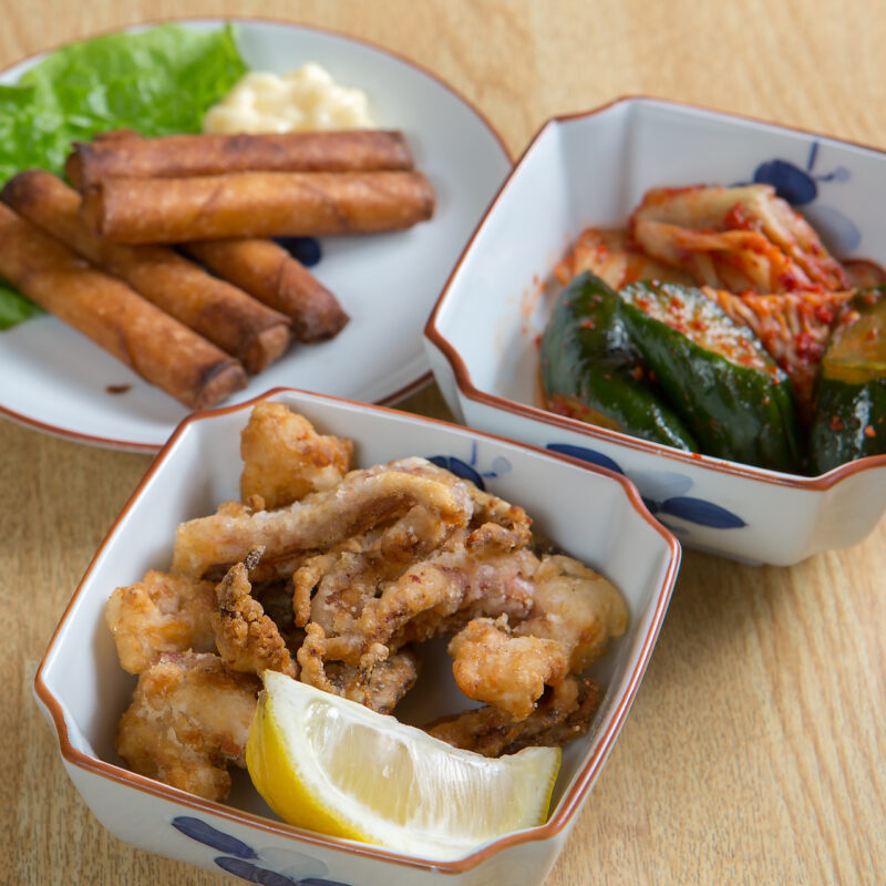 龍神では、店主厳選の新鮮な野菜、肉、魚を使った多彩な料理を提供しております。各種焼き物や年中お楽しみいただけるおでんなど、ジャンルを問わずお酒との相性抜群の逸品が揃います。